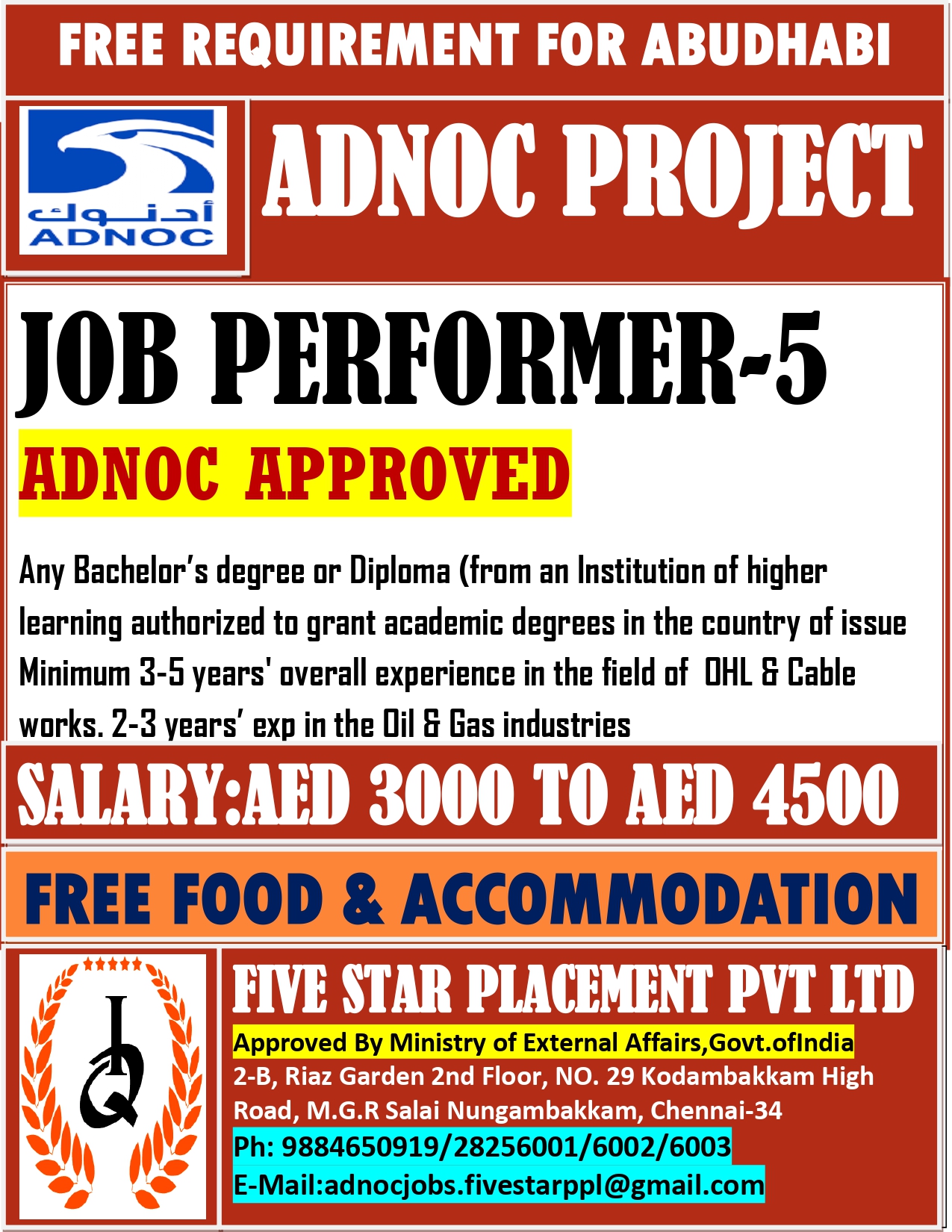 FREE REQUIREMENT FOR ABUDHABI