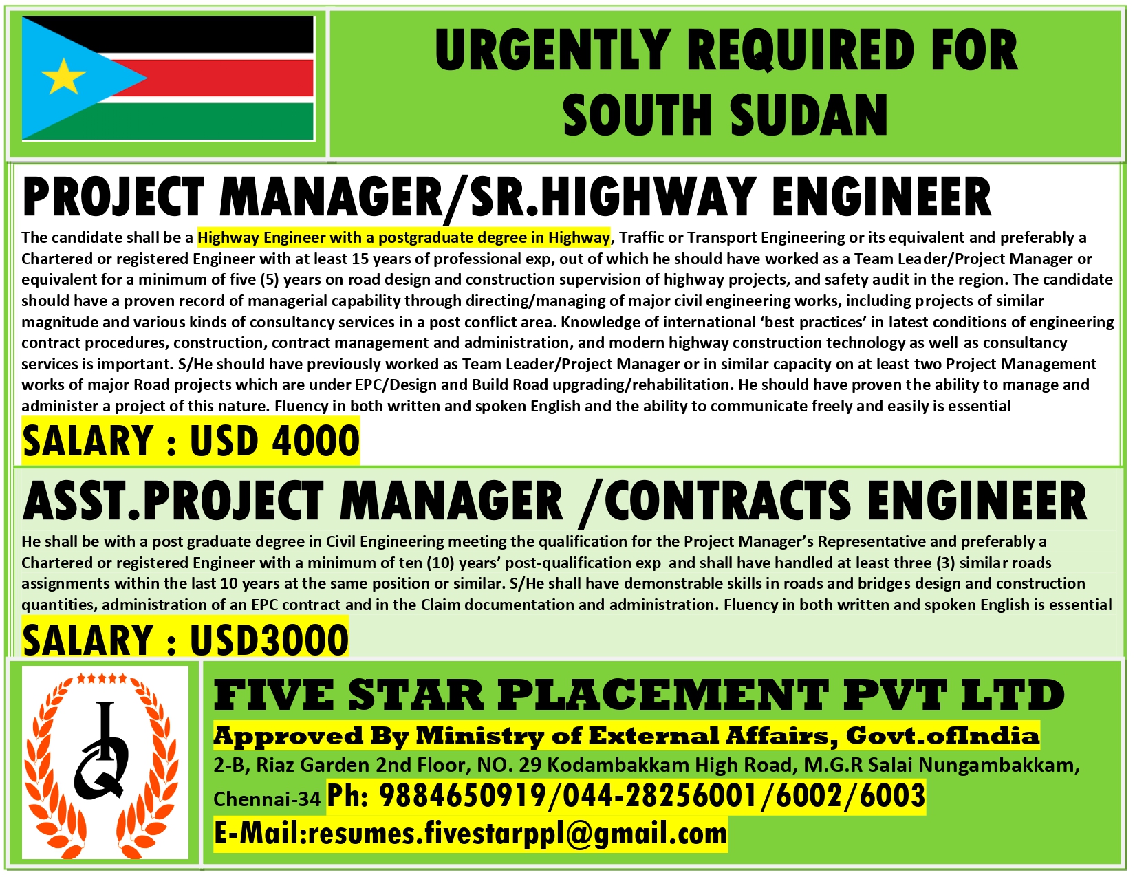 URGENTLY REQUIRED FOR SOUTH SUDAN