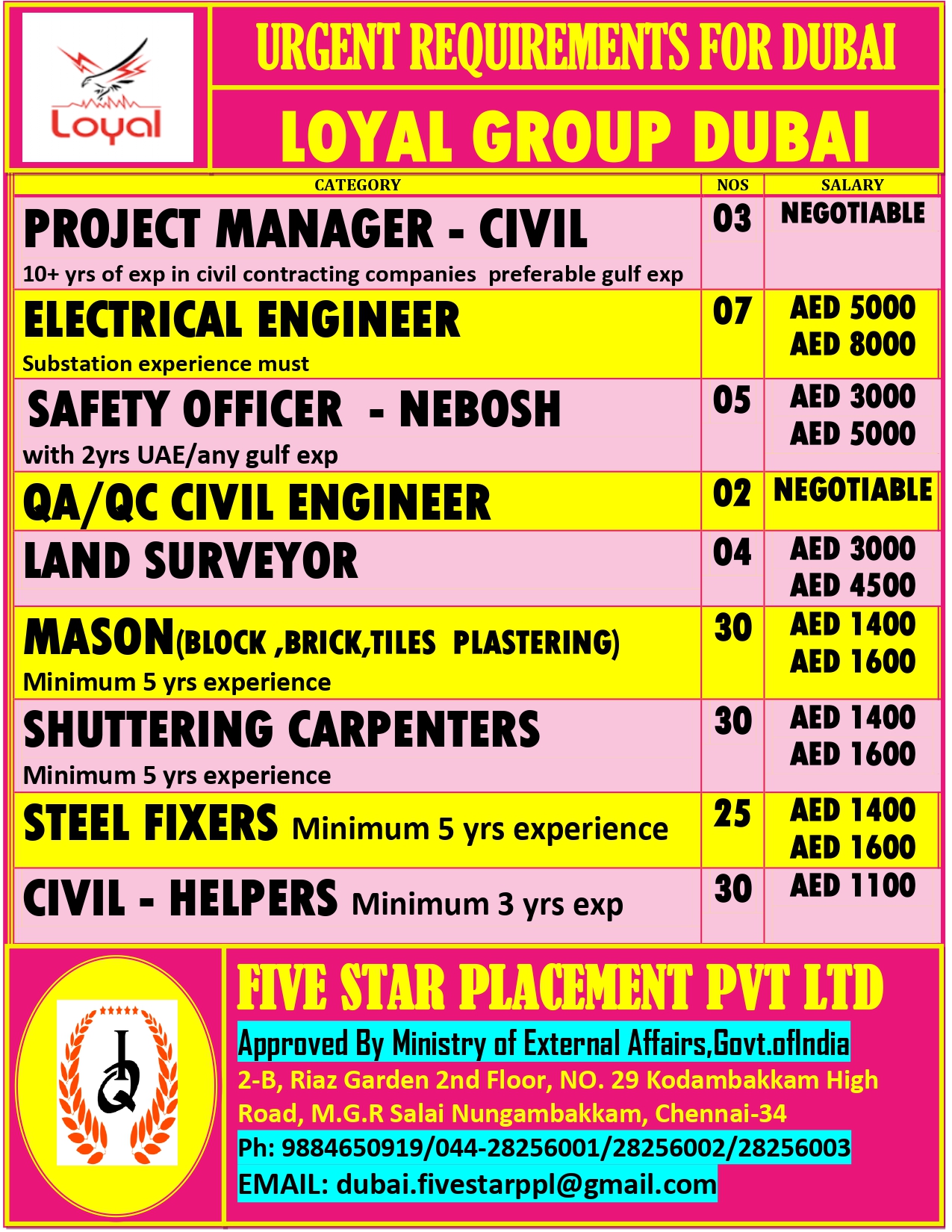 URGENT REQUIREMENT FOR DUBAI