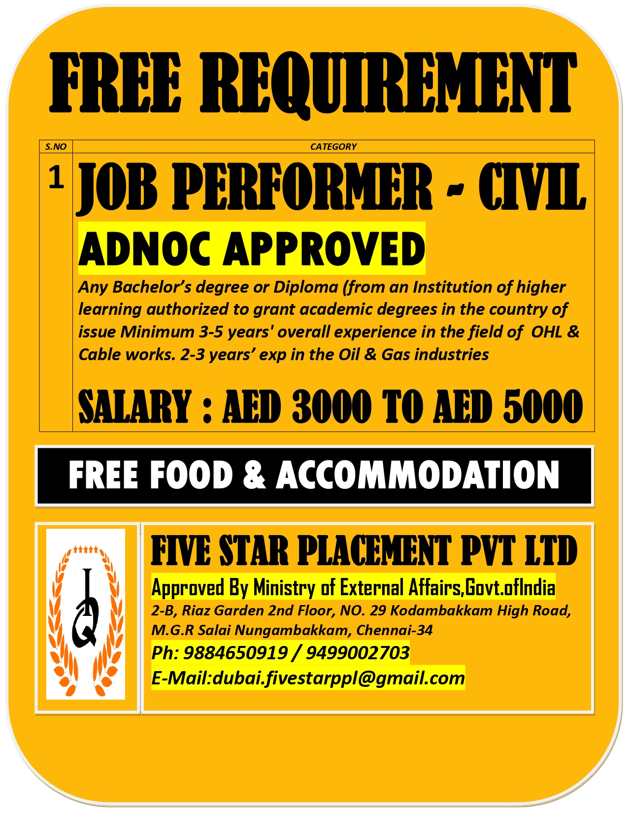 FREE REQUIREMENT FOR ABUDHABI