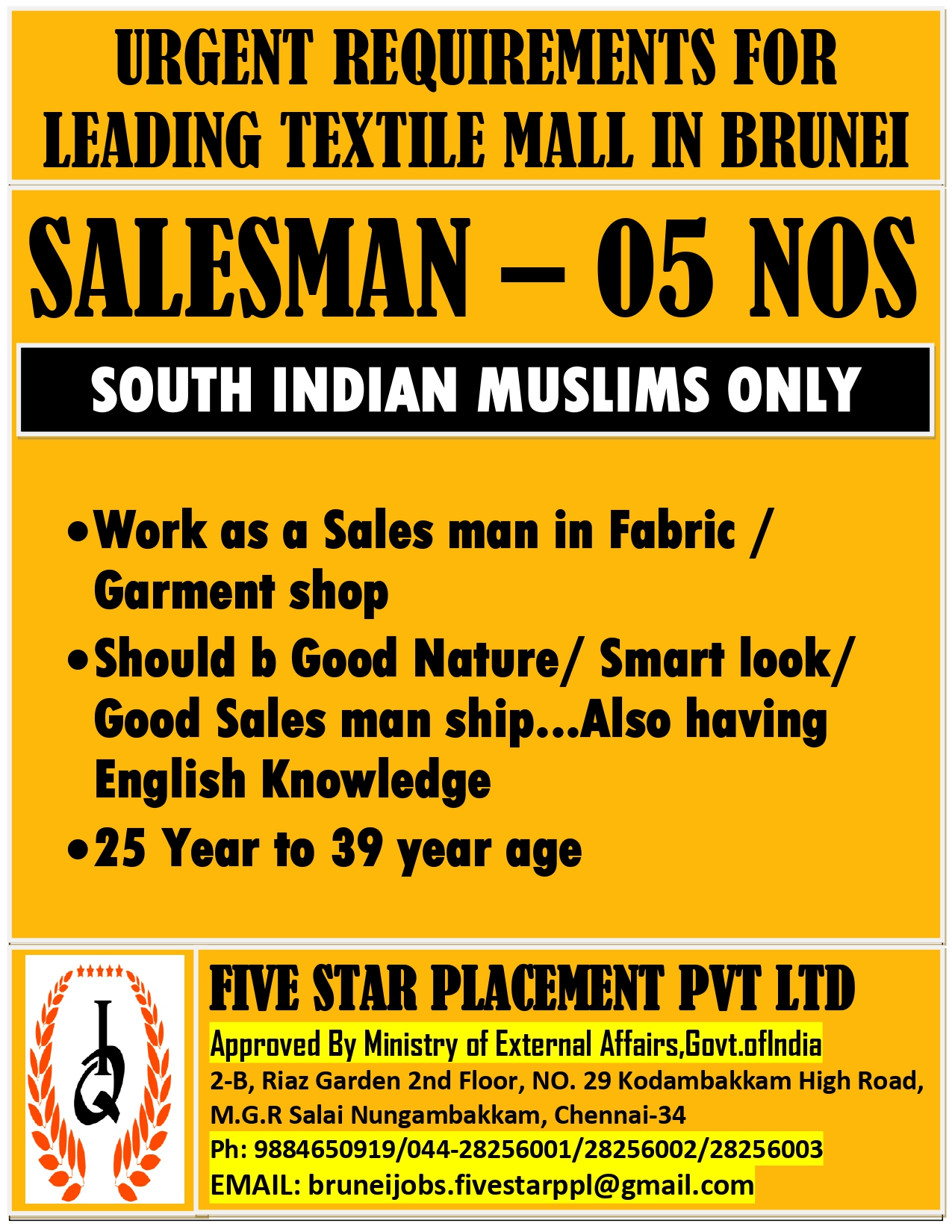 URGENT REQUIREMENTS FOR LEADING TEXTILE MALL IN BRUNEI