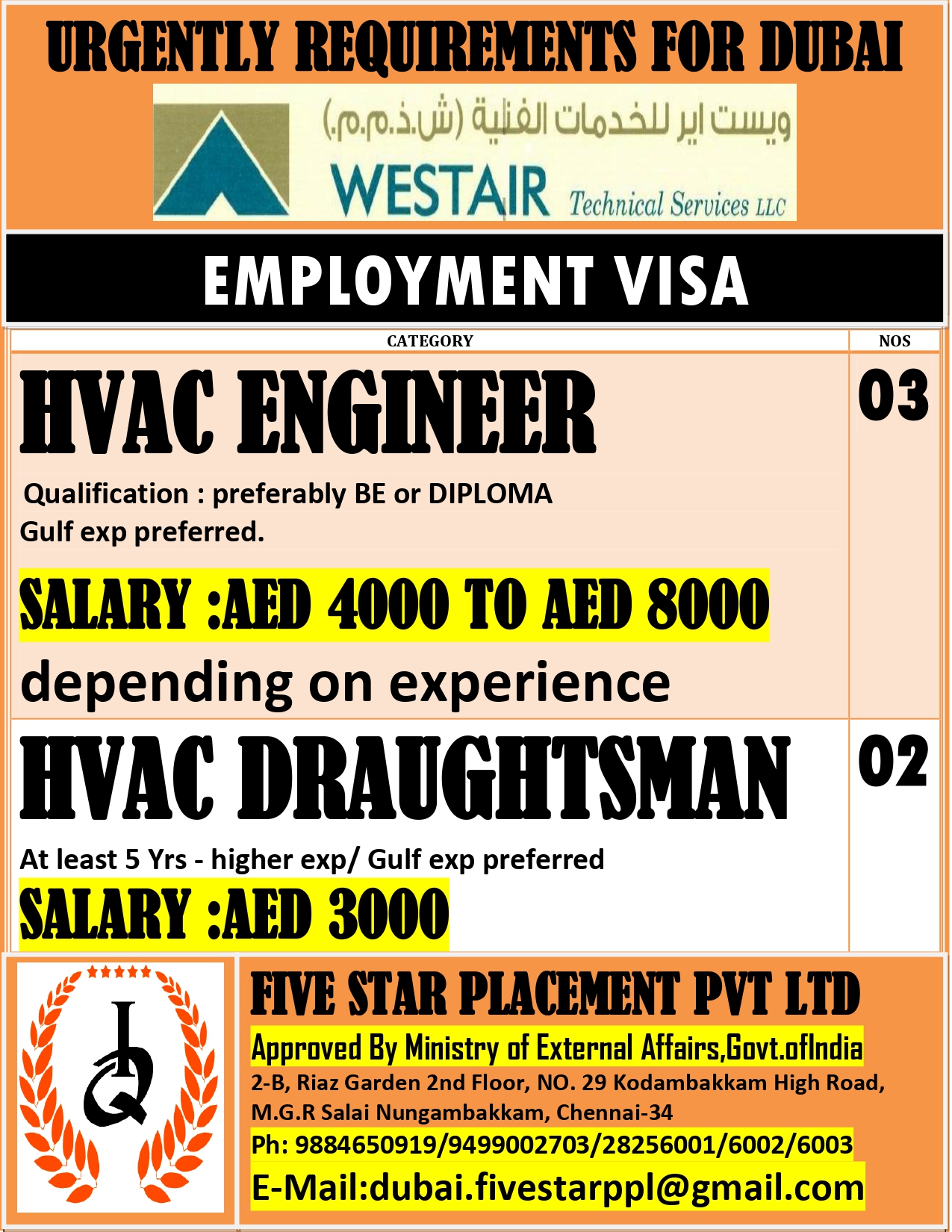URGENT REQUIREMENT FOR DUBAI Interested candida tes can share your cv along with all credentials below Mail Id EMAIL: [email protected] CONTACT NO : 9884650919/044-28256001/28256002/28256003