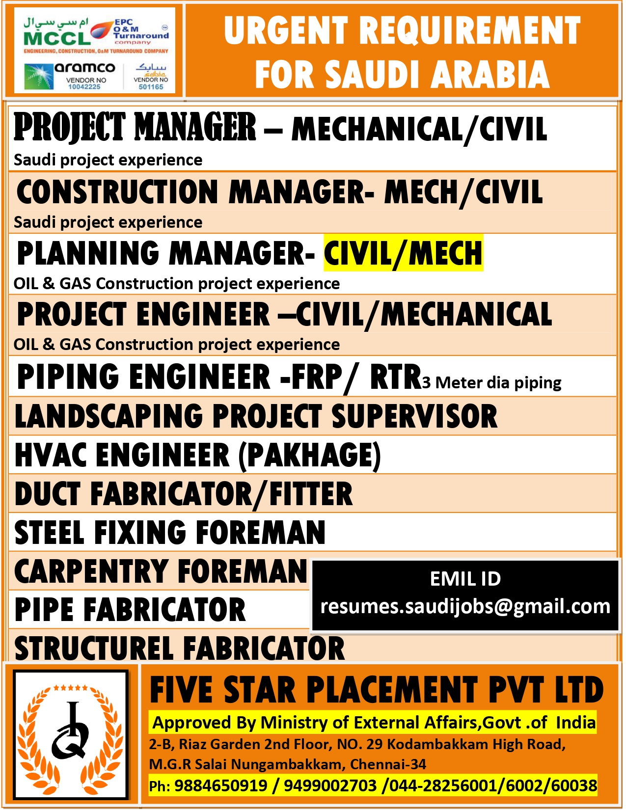 URGENT REQUIREMENT FOR SAUDI ARABIA