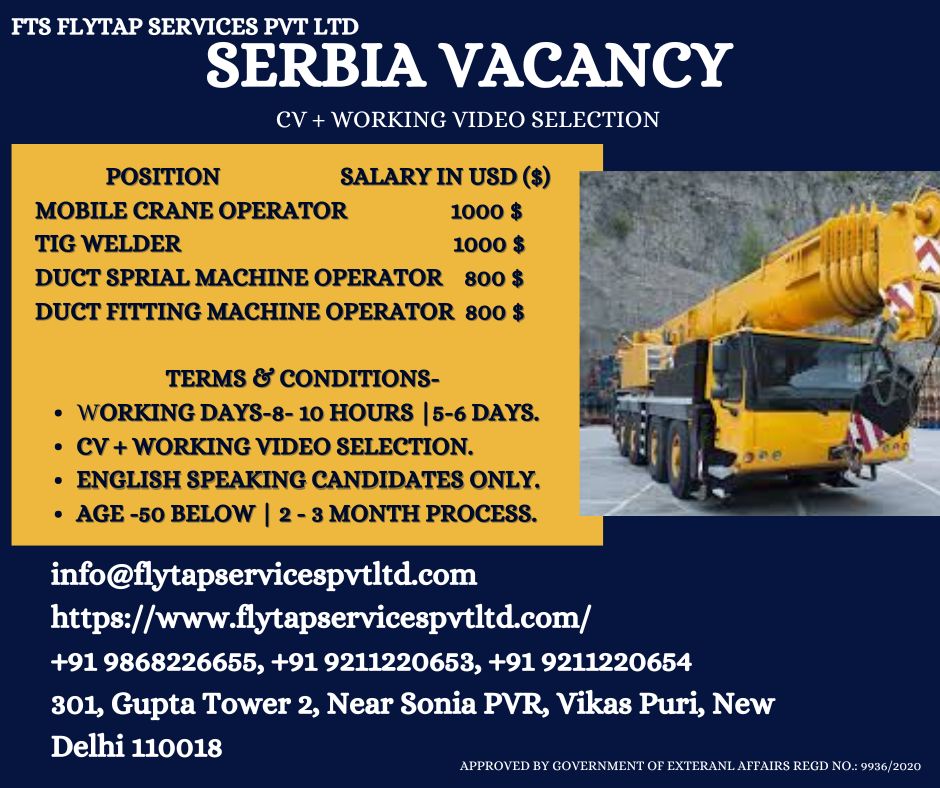 URGENT HIRING FOR SERBIA – APPLY NOW