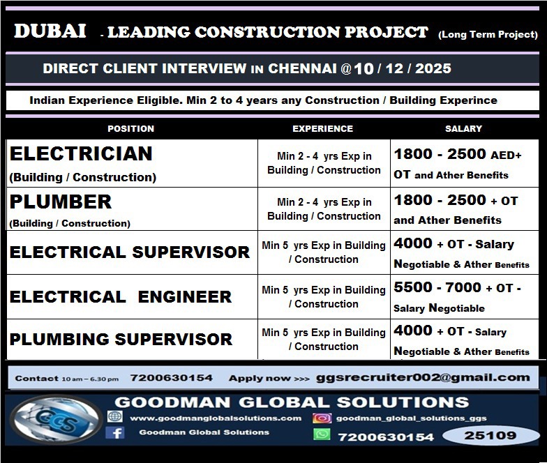DUBAI – LEADING CONSTRUCTION PROJECT – DIRECT CLIENT INTERVIEW IN CHENNAI @ 10 /12/2025