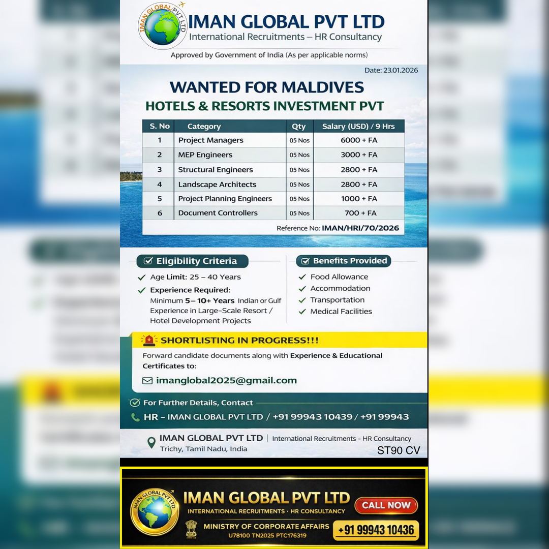 ⚠️ Disclaimer: gccwalkin.com is not a recruitment agency. We do not charge any fees for job information. We only share job details collected from official sources such as company websites, newspapers, and social media. Job seekers are advised to verify the authenticity of the job and company before applying.