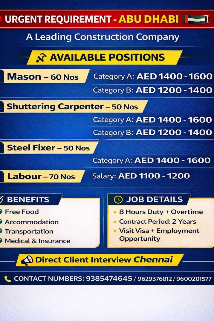 LEADING CONSTRUCTION COMPANY REQUIREMENT ABU DHABI