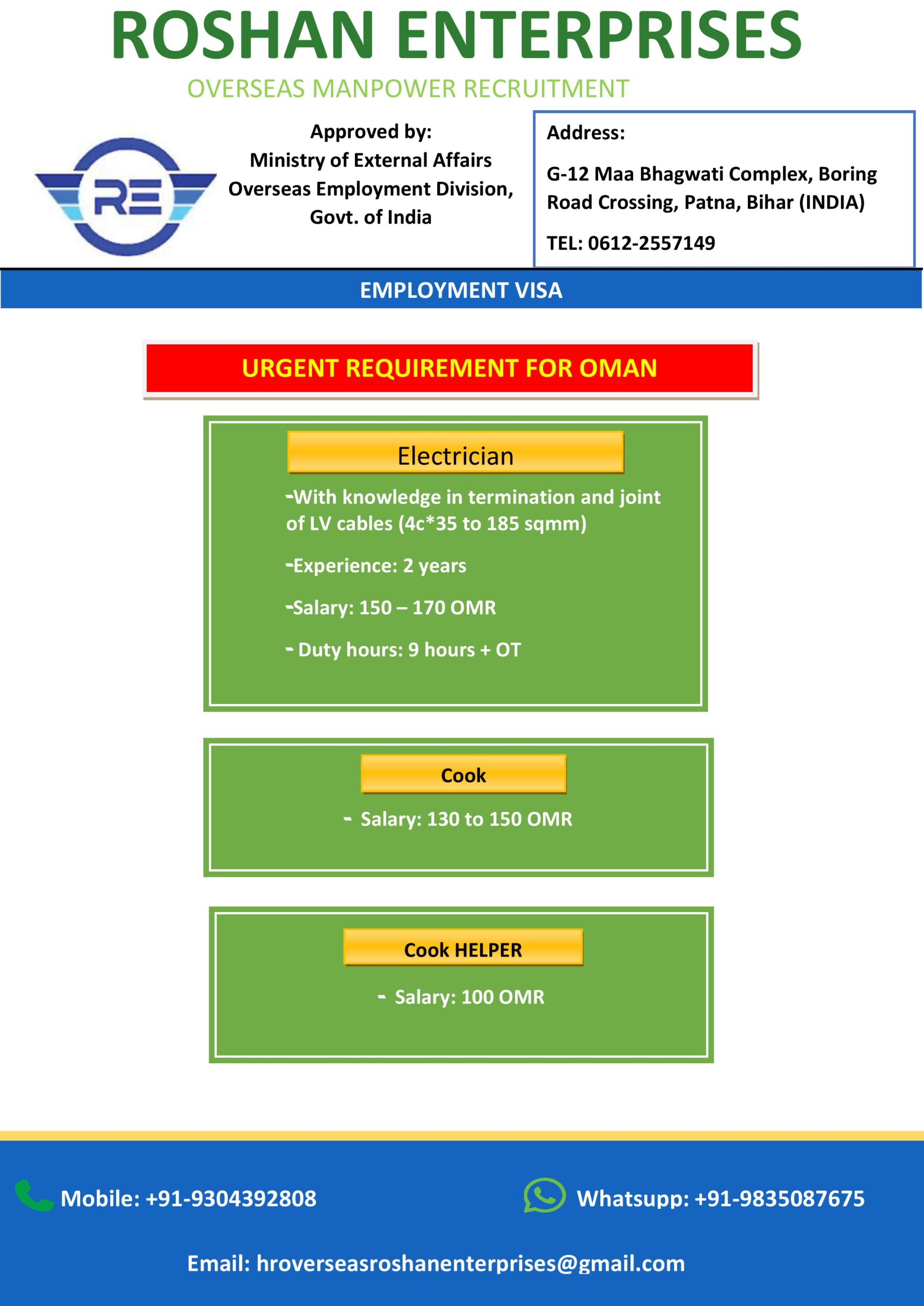 URGENT REQUIREMENT FOR OMAN