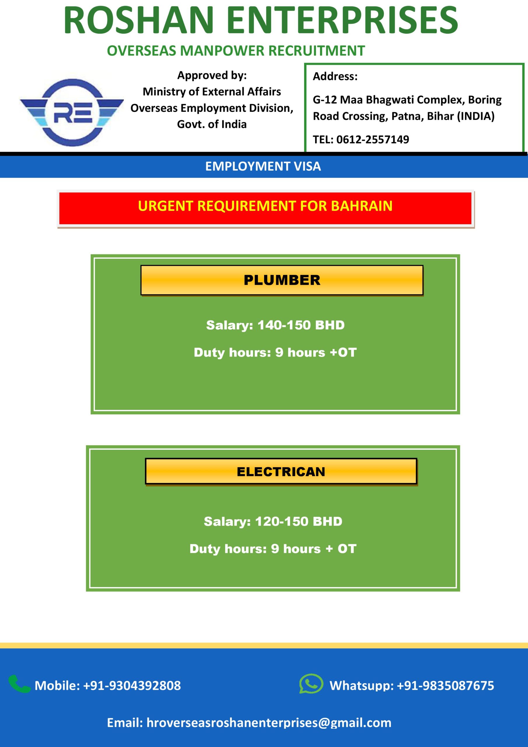 URGENT REQUIREMENT FOR BAHRAIN