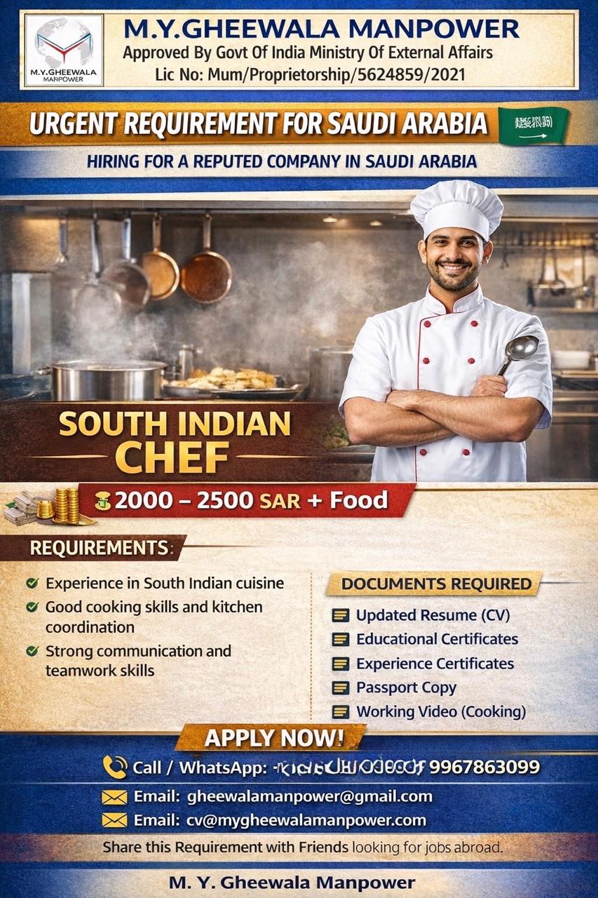 Requesting you to WhatsApp and forward your updated resume, educational certificate, experience certificate, passport copy, and working video on [email protected]/[email protected]
