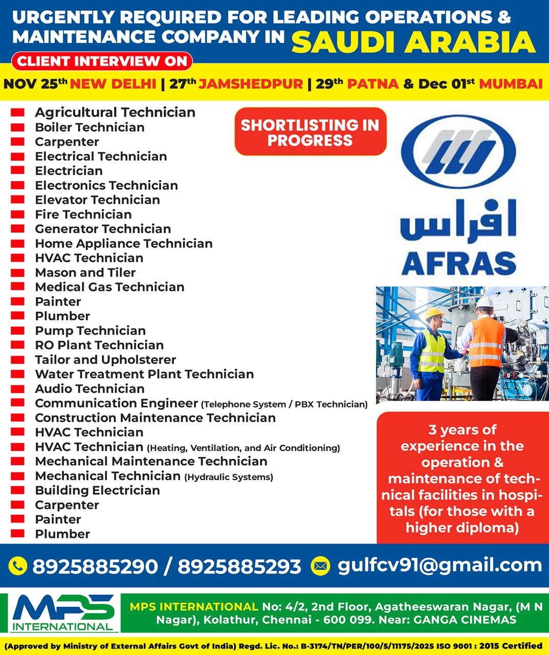 3 years of experience in the operation & maintenance of technical facilities in hospitals (for those with a higher diploma)