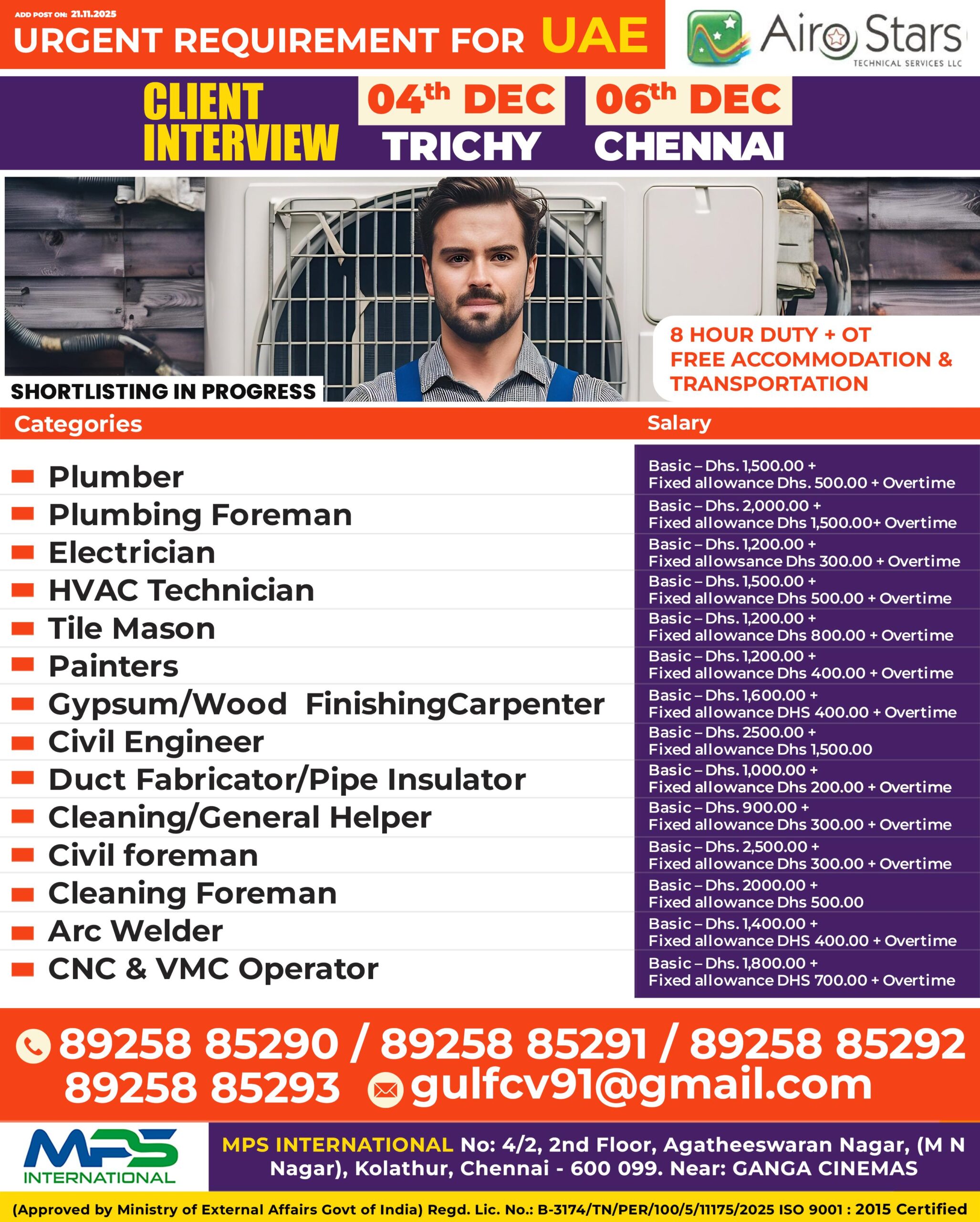 Hiring for the Following Categories