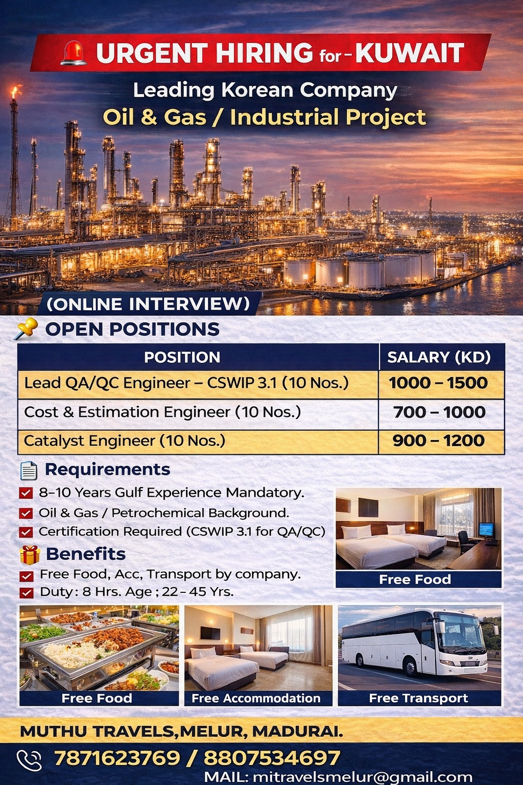 ⚠️ Disclaimer: gccwalkin.com is not a recruitment agency. We do not charge any fees for job information. We only share job details collected from official sources such as company websites, newspapers, and social media. Job seekers are advised to verify the authenticity of the job and company before applying.