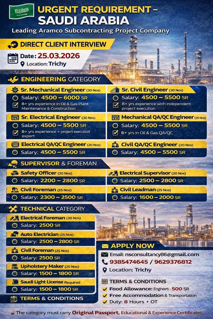 ⚠️ Disclaimer: gccwalkin.com is not a recruitment agency. We do not charge any fees for job information. We only share job details collected from official sources such as company websites, newspapers, and social media. Job seekers are advised to verify the authenticity of the job and company before applying.