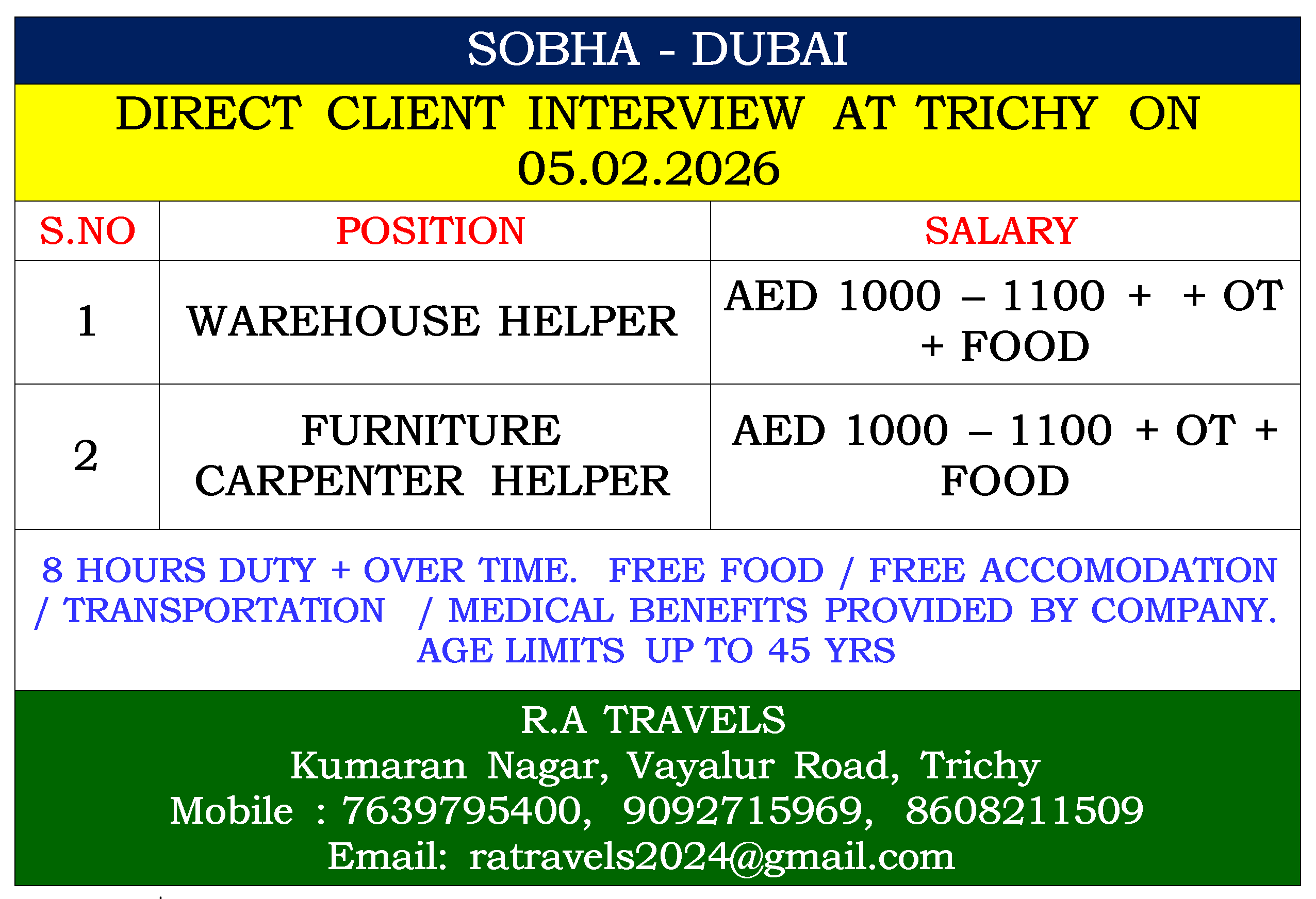 DIRECT CLIENT INTERVIEW AT TRICHY ON 05.02.2026 |