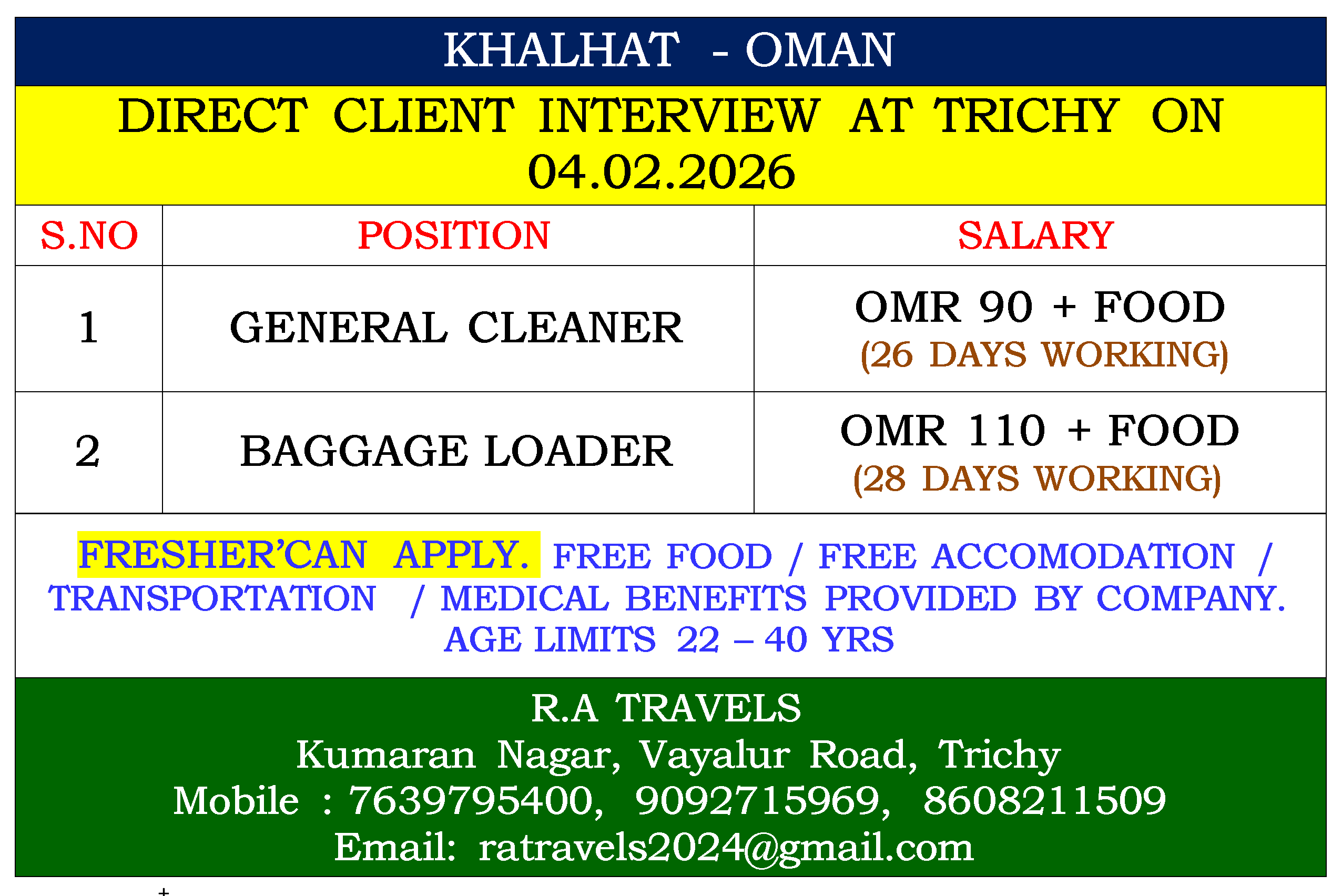 DIRECT CLIENT INTERVIEW AT TRICHY ON 04.02.2026 |