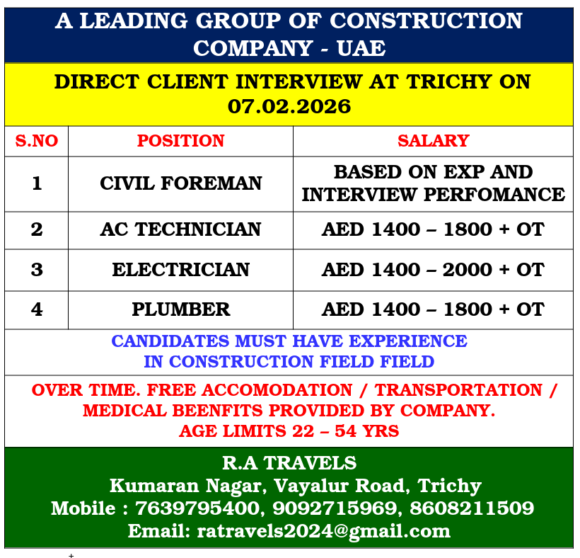 DIRECT CLIENT INTERVIEW AT TRICHY ON 07.02.2026