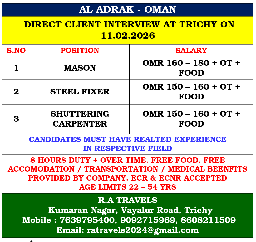DIRECT CLIENT INTERVIEW AT TRICHY ON 11.02.2026