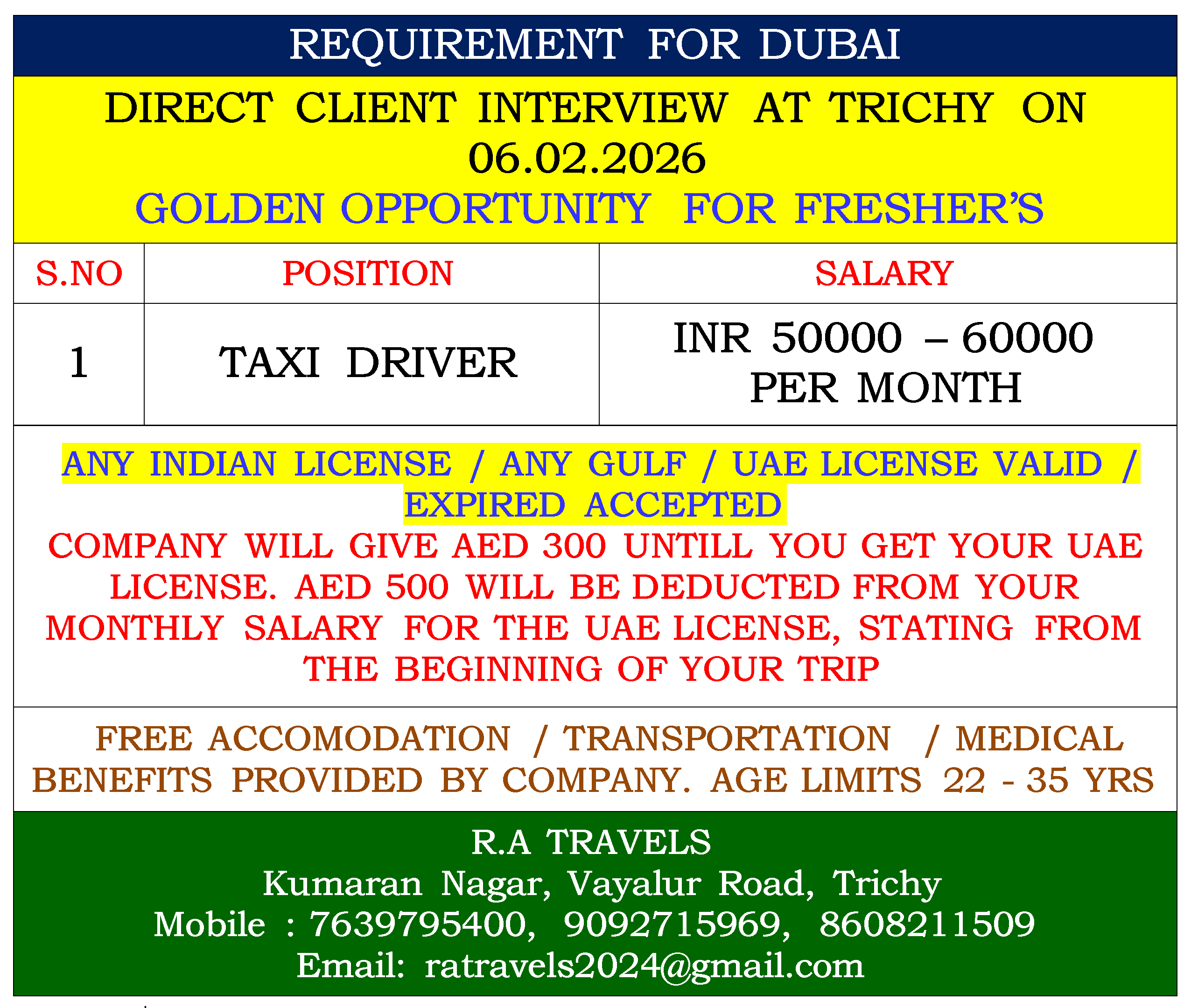 DIRECT CLIENT INTERVIEW AT TRICHY ON 06.02.2026 GOLDEN OPPORTUNITY FOR FRESHER’S |