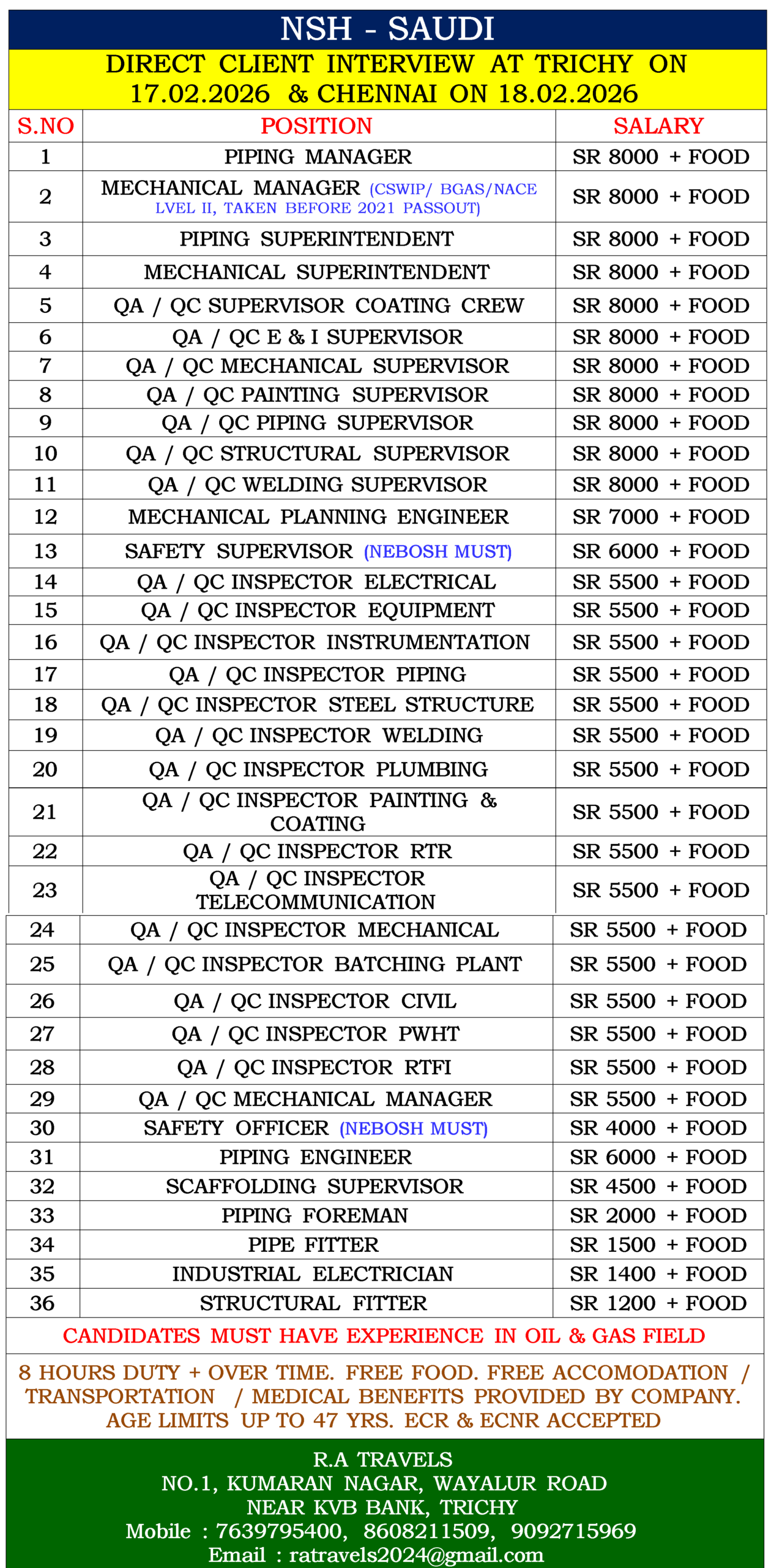DIRECT CLIENT INTERVIEW AT TRICHY ON 17.02.2026 & CHENNAI ON 18.02.2026 |