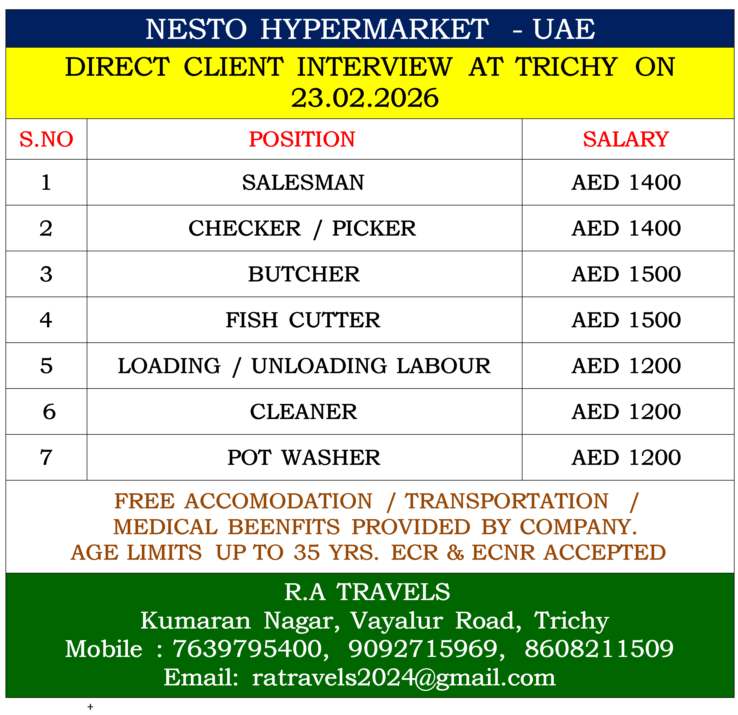 DIRECT CLIENT INTERVIEW AT TRICHY ON 23.02.2026 |
