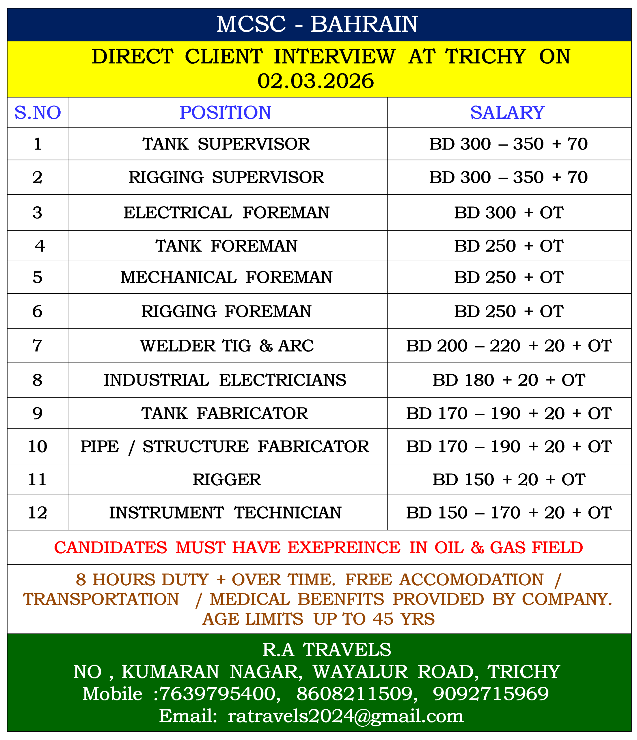 DIRECT CLIENT INTERVIEW AT TRICHY ON 02.03.2026 |