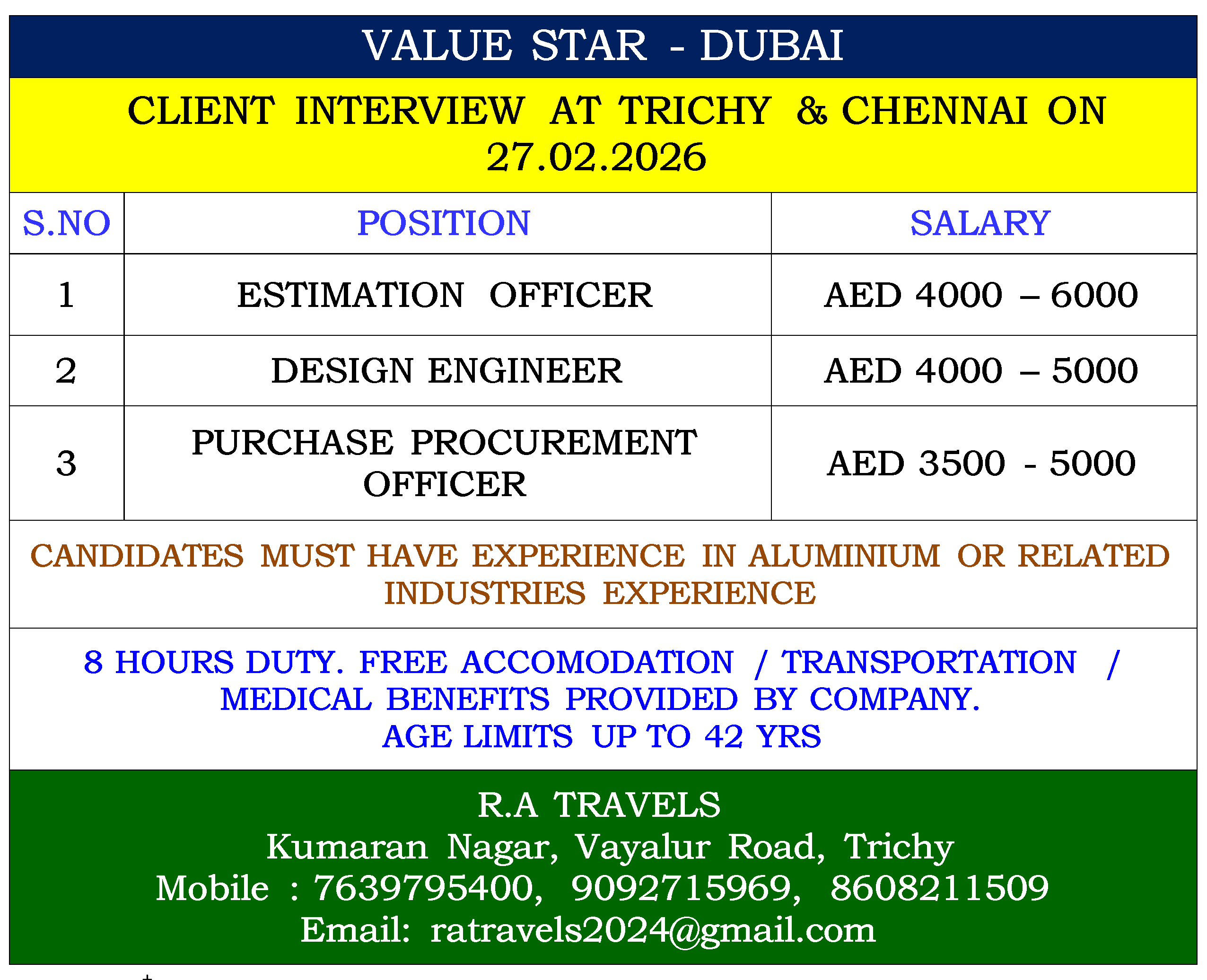 CLIENT INTERVIEW AT TRICHY & CHENNAI ON 27.02.2026 |