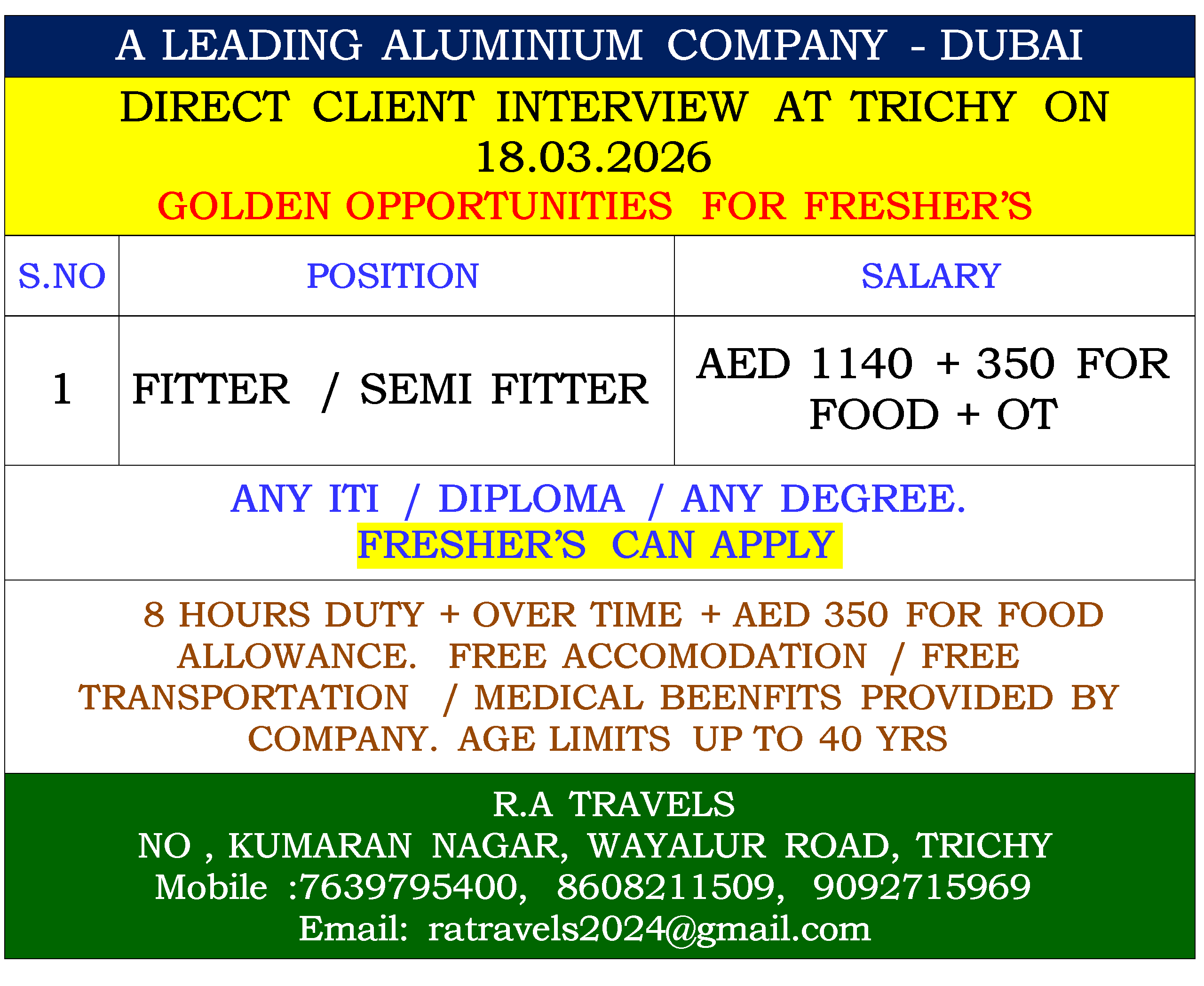 DIRECT CLIENT INTERVIEW AT TRICHY ON 18.03.2026 GOLDEN OPPORTUNITIES FOR FRESHER’S |