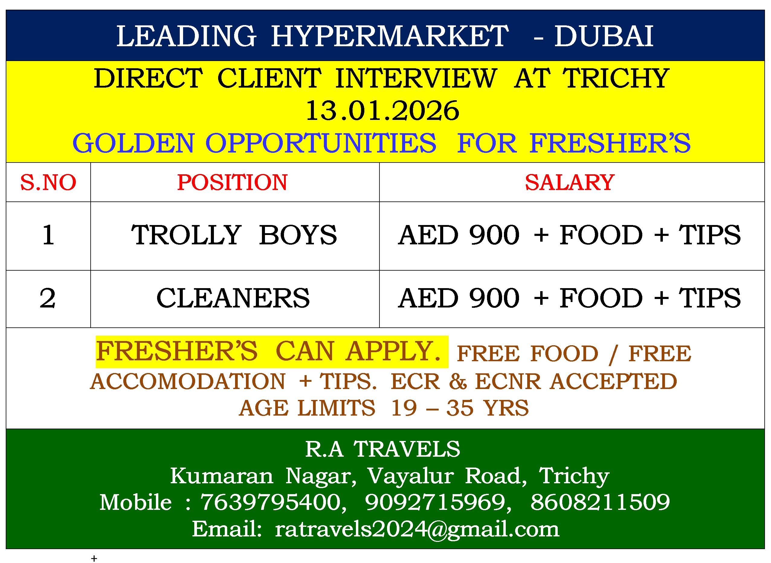DIRECT CLIENT INTERVIEW AT TRICHY 13.01.2026 GOLDEN OPPORTUNITIES FOR FRESHER’S |