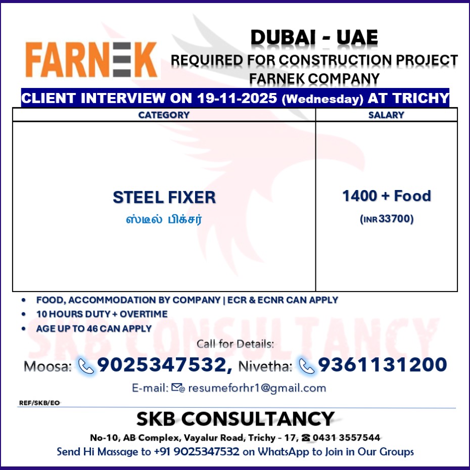 HIRING FOR DUBAI – FARNEK COMPANY,