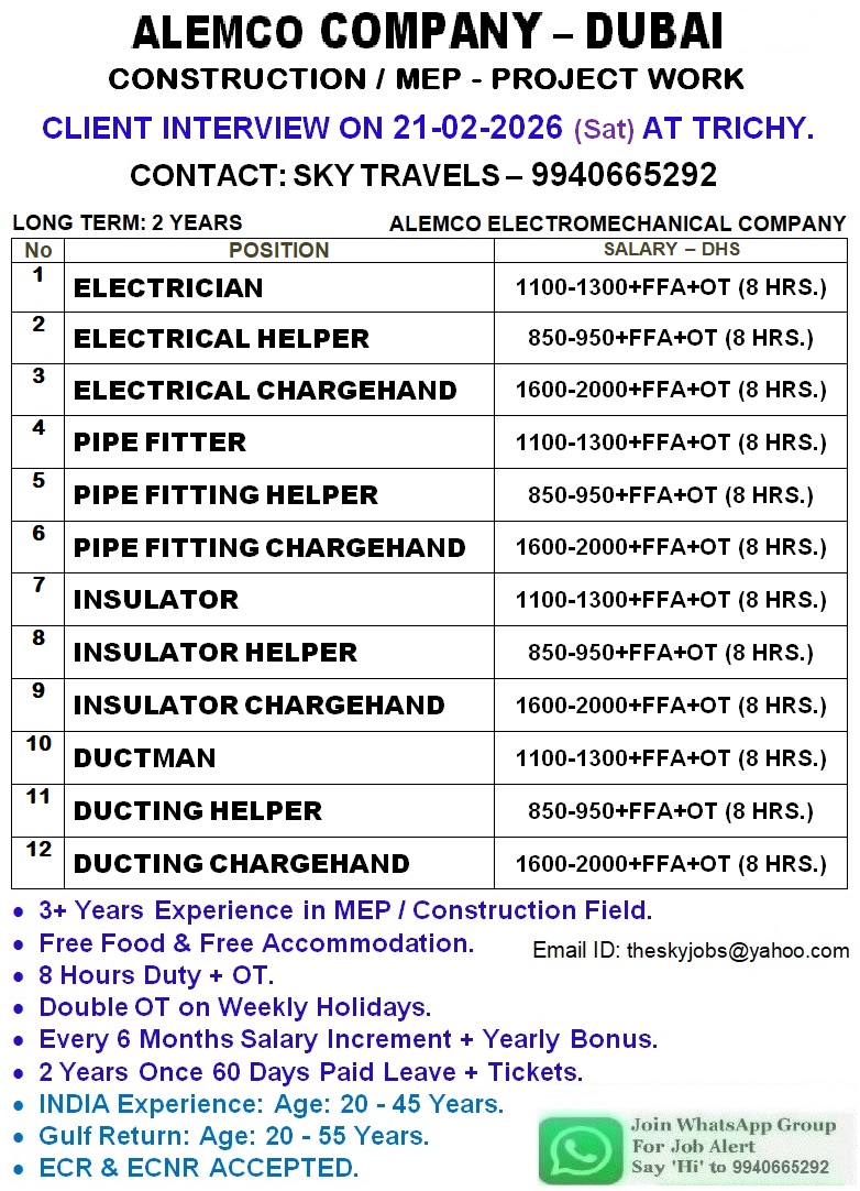 ⚠️ Disclaimer: gccwalkin.com is not a recruitment agency. We do not charge any fees for job information. We only share job details collected from official sources such as company websites, newspapers, and social media. Job seekers are advised to verify the authenticity of the job and company before applying.