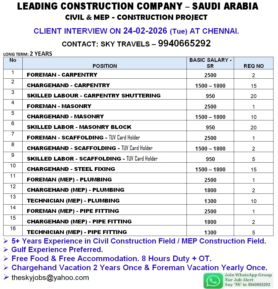 ⚠️ Disclaimer: gccwalkin.com is not a recruitment agency. We do not charge any fees for job information. We only share job details collected from official sources such as company websites, newspapers, and social media. Job seekers are advised to verify the authenticity of the job and company before applying.