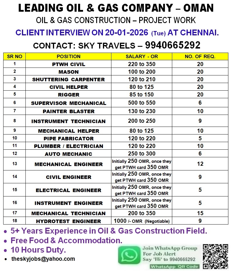Daily Job Alert Join the Whatsapp Channel Join Now Urgently Required For Leading Company – Oman. Post navigation ASMAX CONSULTANTS AL ARAB ARAFA CONSULTANCY