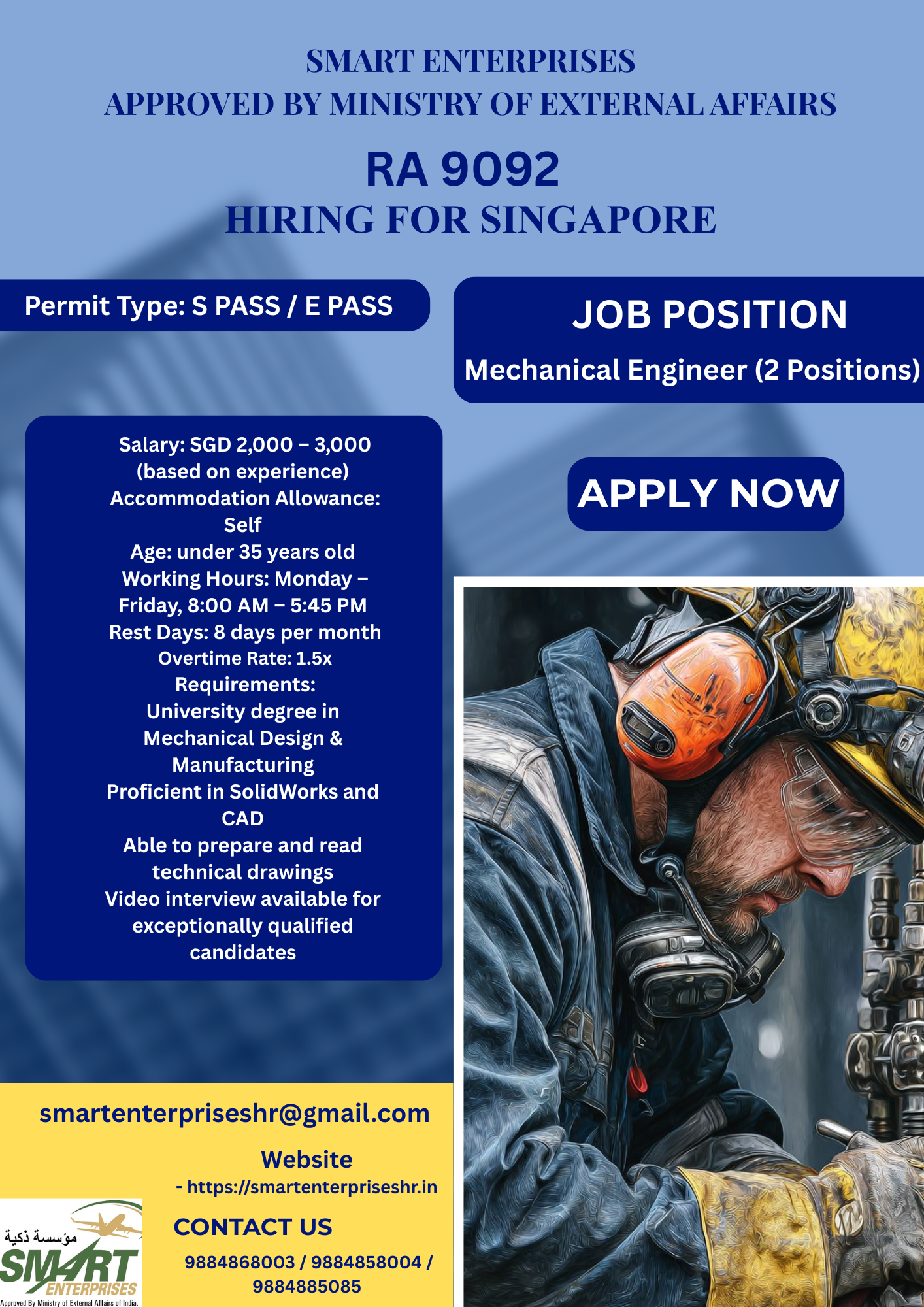 JOB POSITION MECHANICAL ENGINEER (2 POSITIONS)