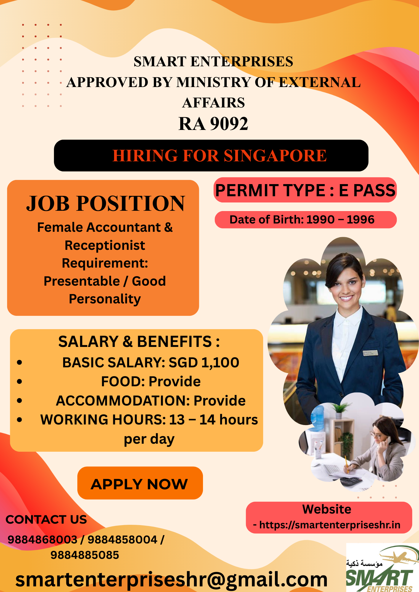 JOB POSITION Female Accountant & Receptionist Requirement: Presentable / Good Personality