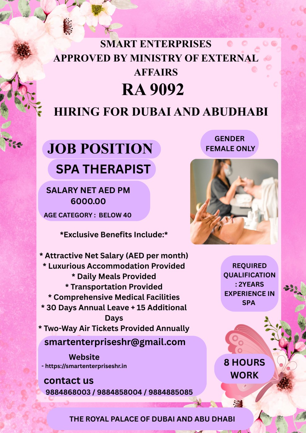 REQUIRED QUALIFICATION : 2YEARS EXPERIENCE IN SPA