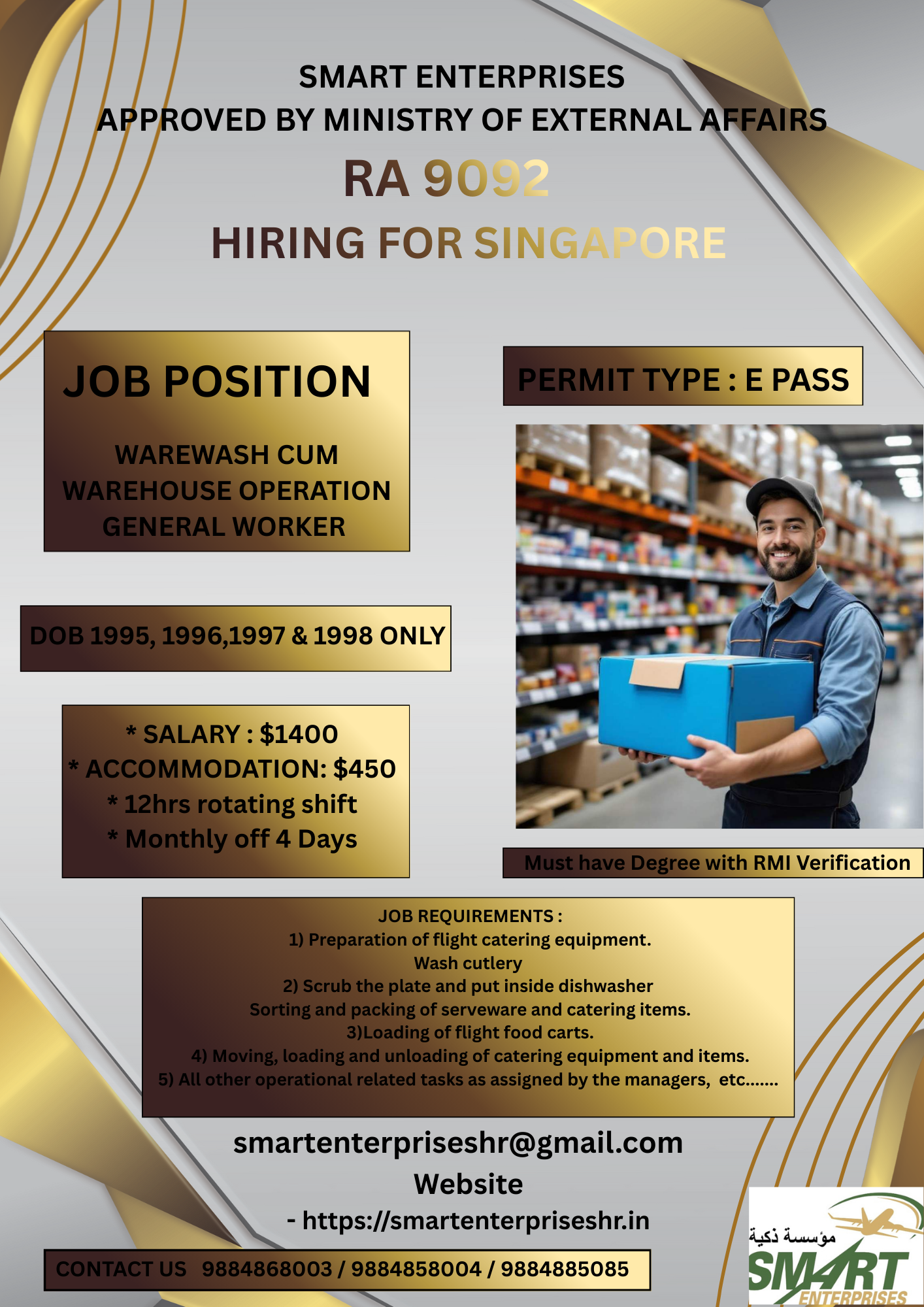 JOB POSITION WAREWASH CUM WAREHOUSE OPERATION GENERAL WORKER