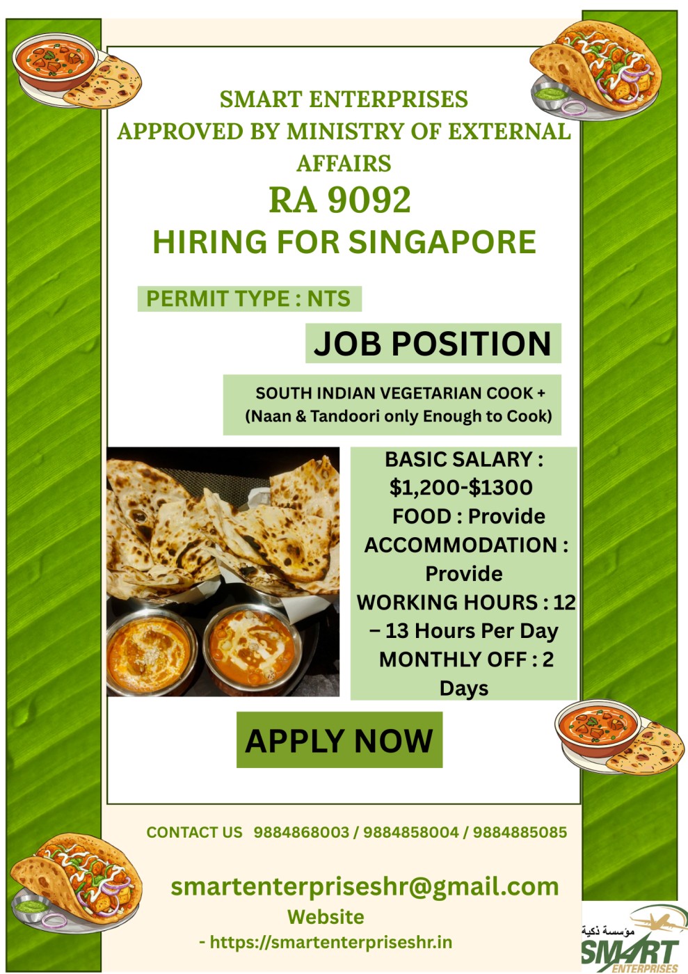 JOB POSITION SOUTH INDIAN VEGETARIAN COOK + (Naan & Tandoori only Enough to Cook)