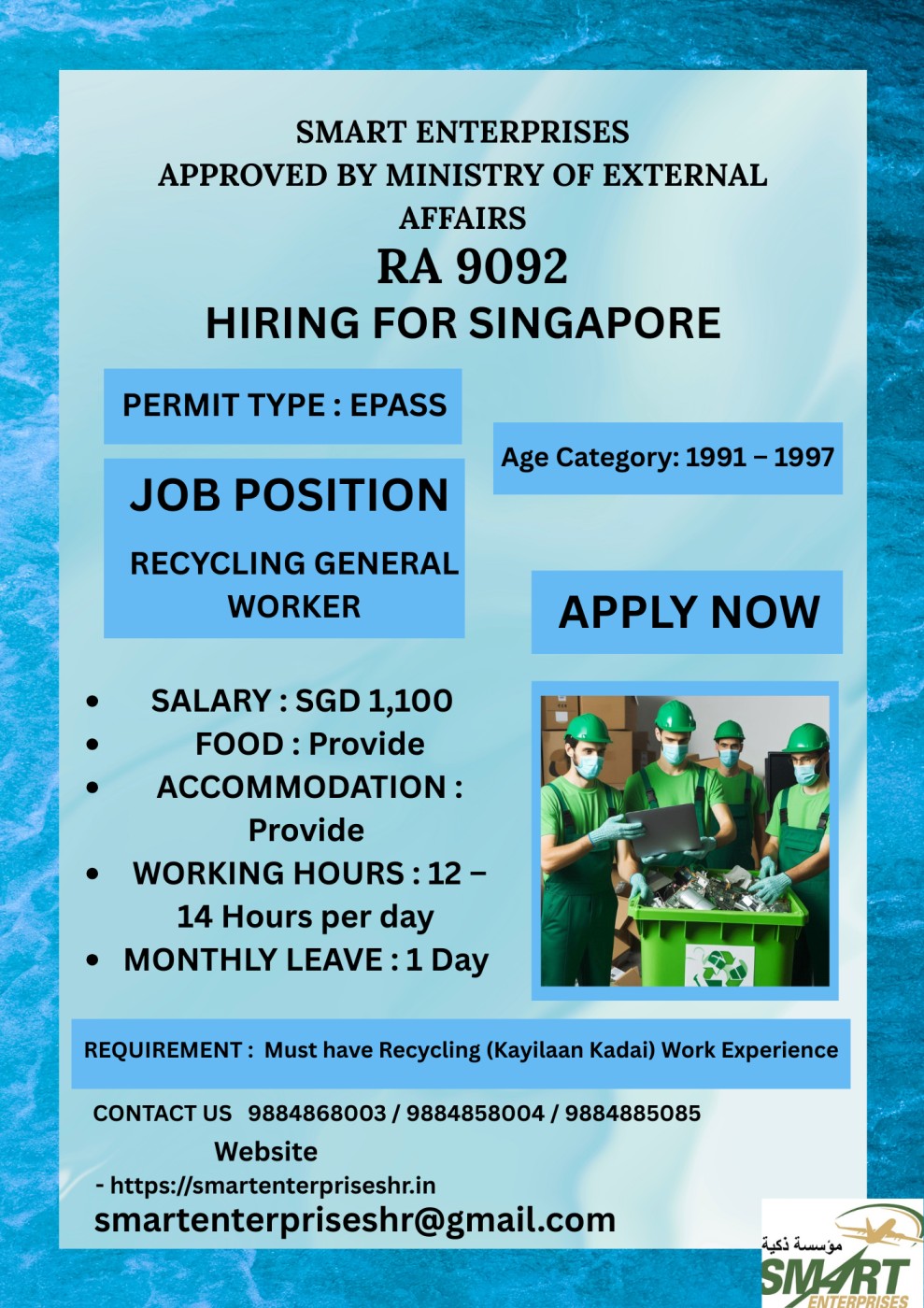 REQUIREMENT : Must have Recycling (Kayilaan Kadai) Work Experience