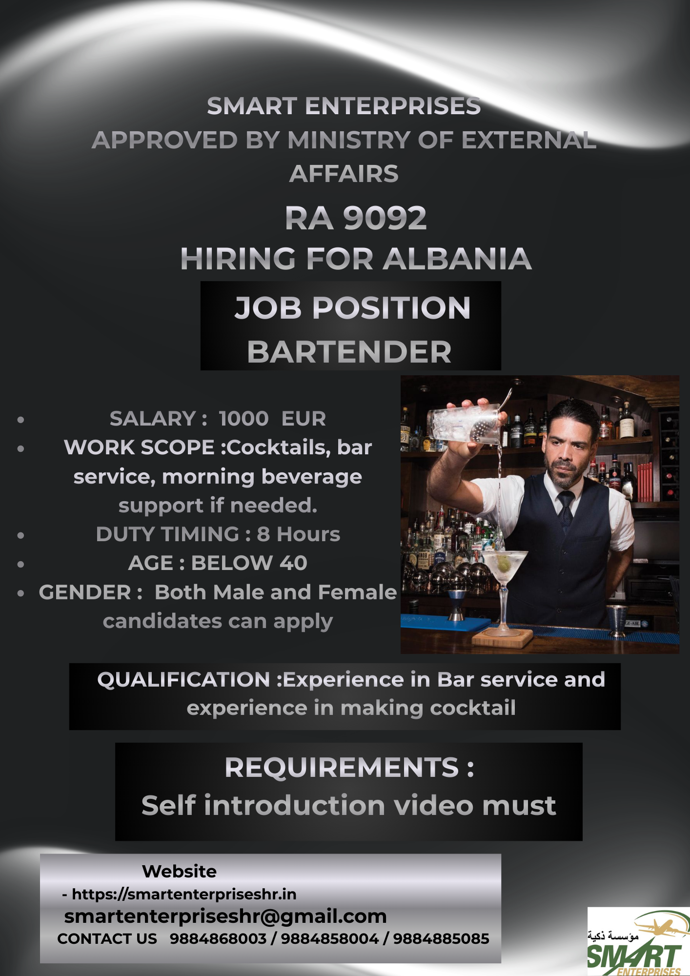 QUALIFICATION :Experience in Bar service and experience in making cocktail