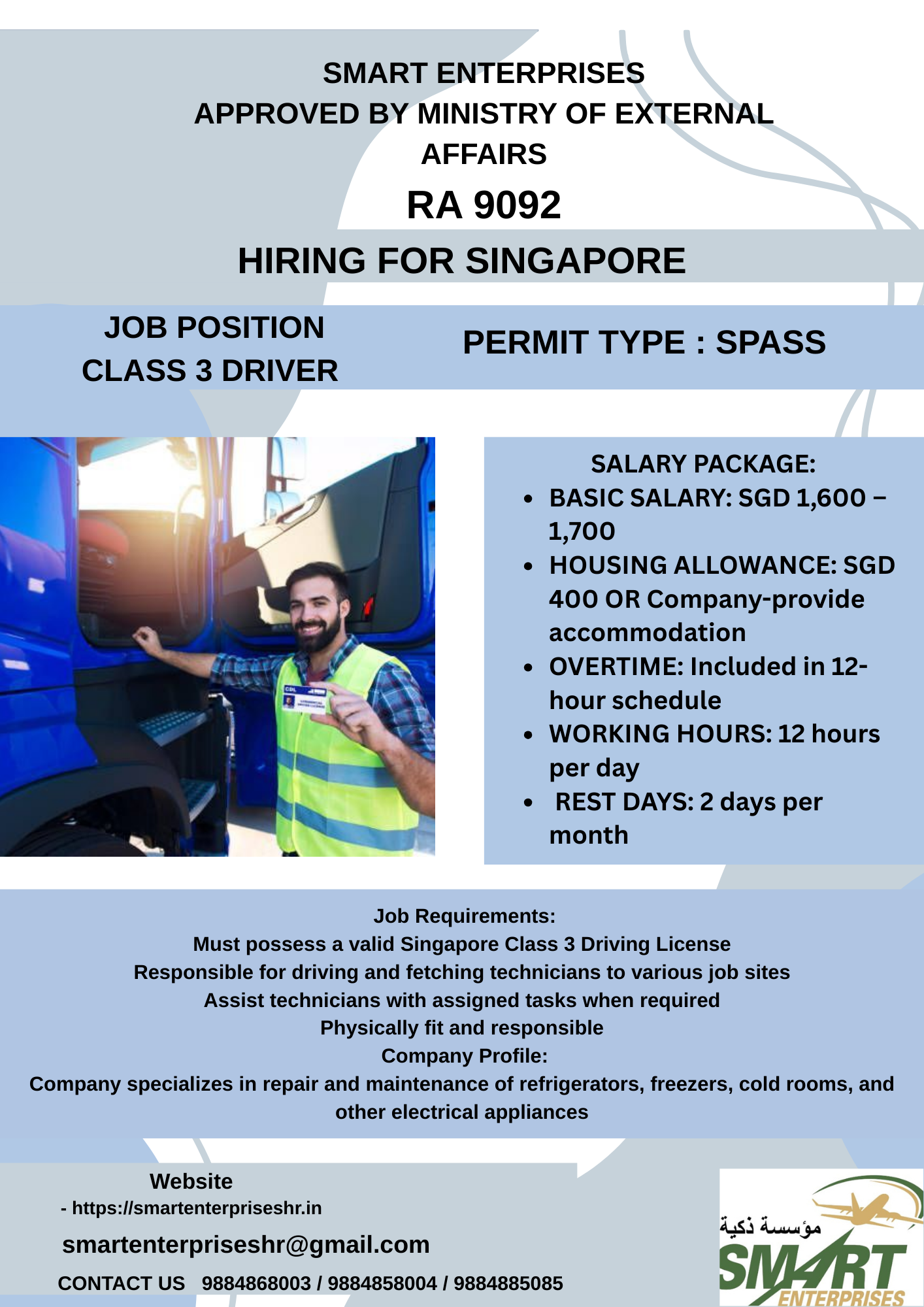 Must possess a valid Singapore Class 3 Driving License