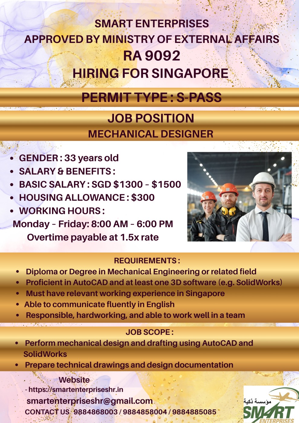 BASIC SALARY : SGD $1300 – $1500