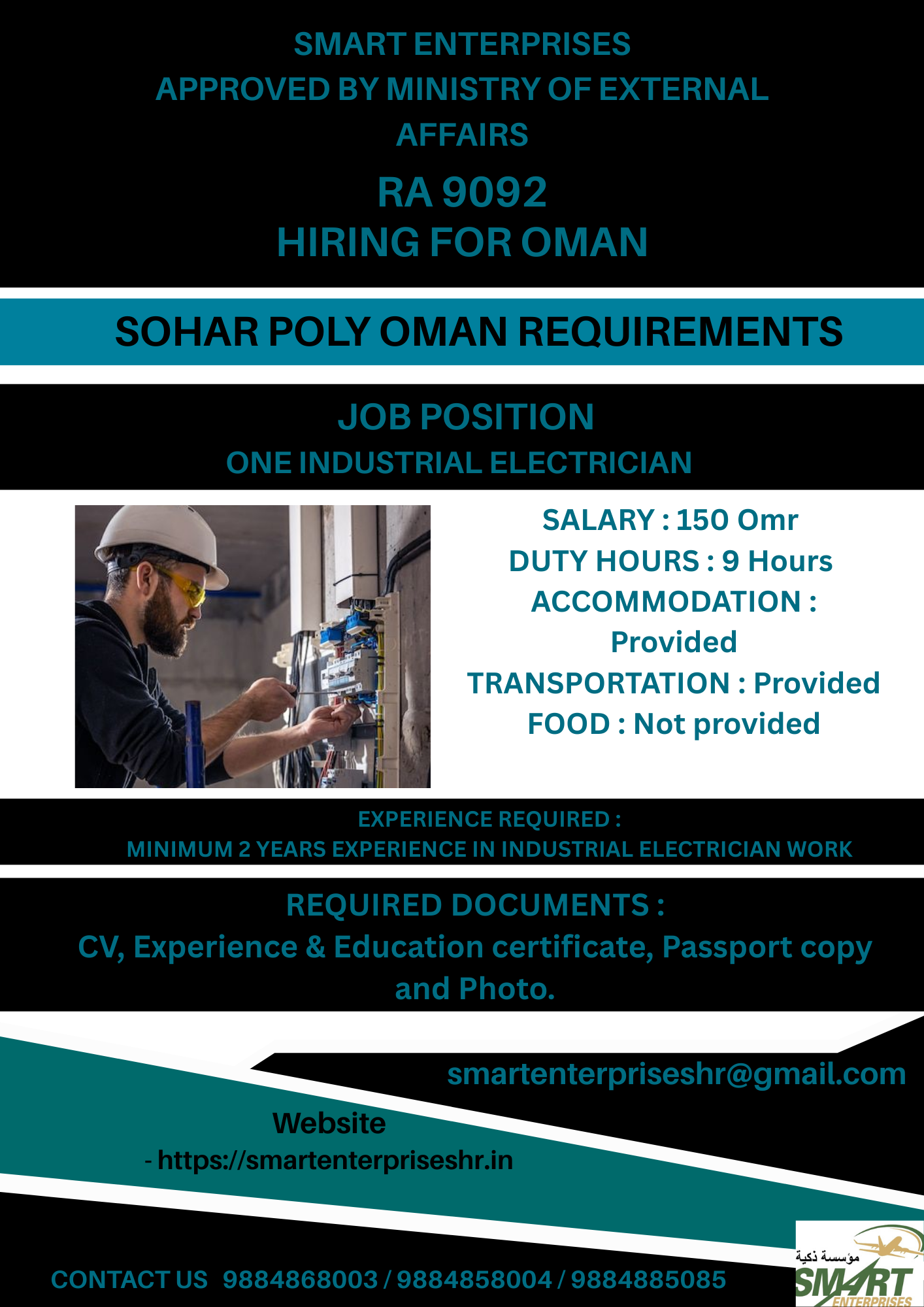 MINIMUM 2 YEARS EXPERIENCE IN INDUSTRIAL ELECTRICIAN WORK