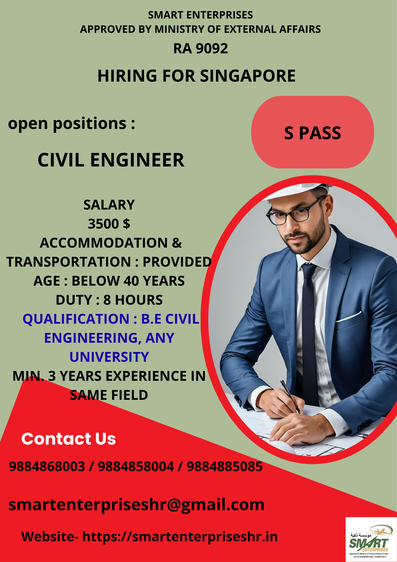 QUALIFICATION : B.E CIVIL ENGINEERING, ANY UNIVERSITY
