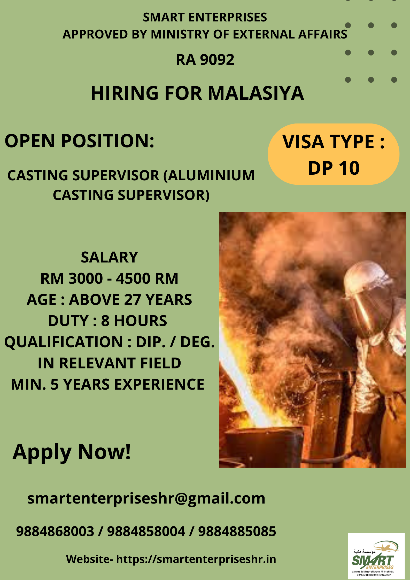 HIRING FOR MALASIYA