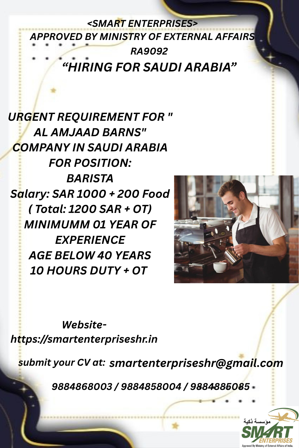 URGENT REQUIREMENT FOR ” AL AMJAAD BARNS” COMPANY IN SAUDI ARABIA