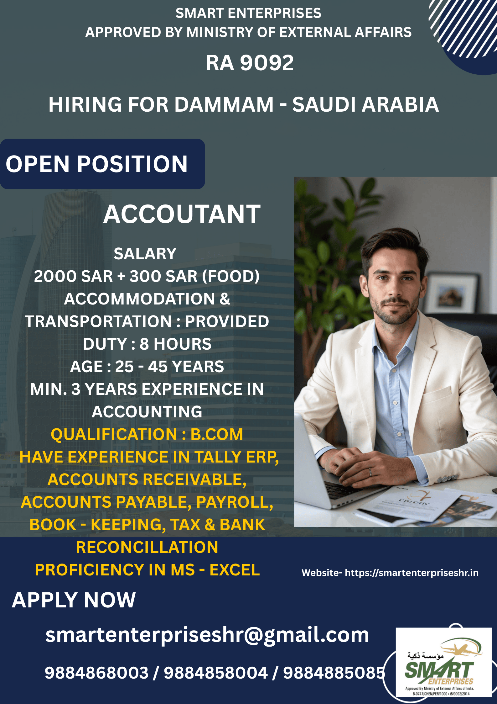 HIRING FOR DAMMAM – SAUDI ARABIA