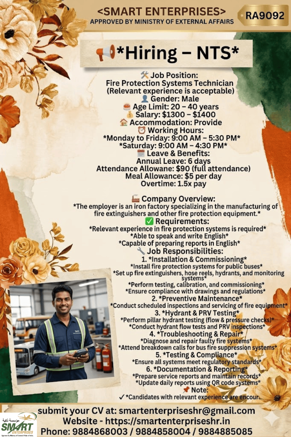 🛠 Job Position: *Fire Protection Systems Technician* *(Relevant experience is acceptable)*