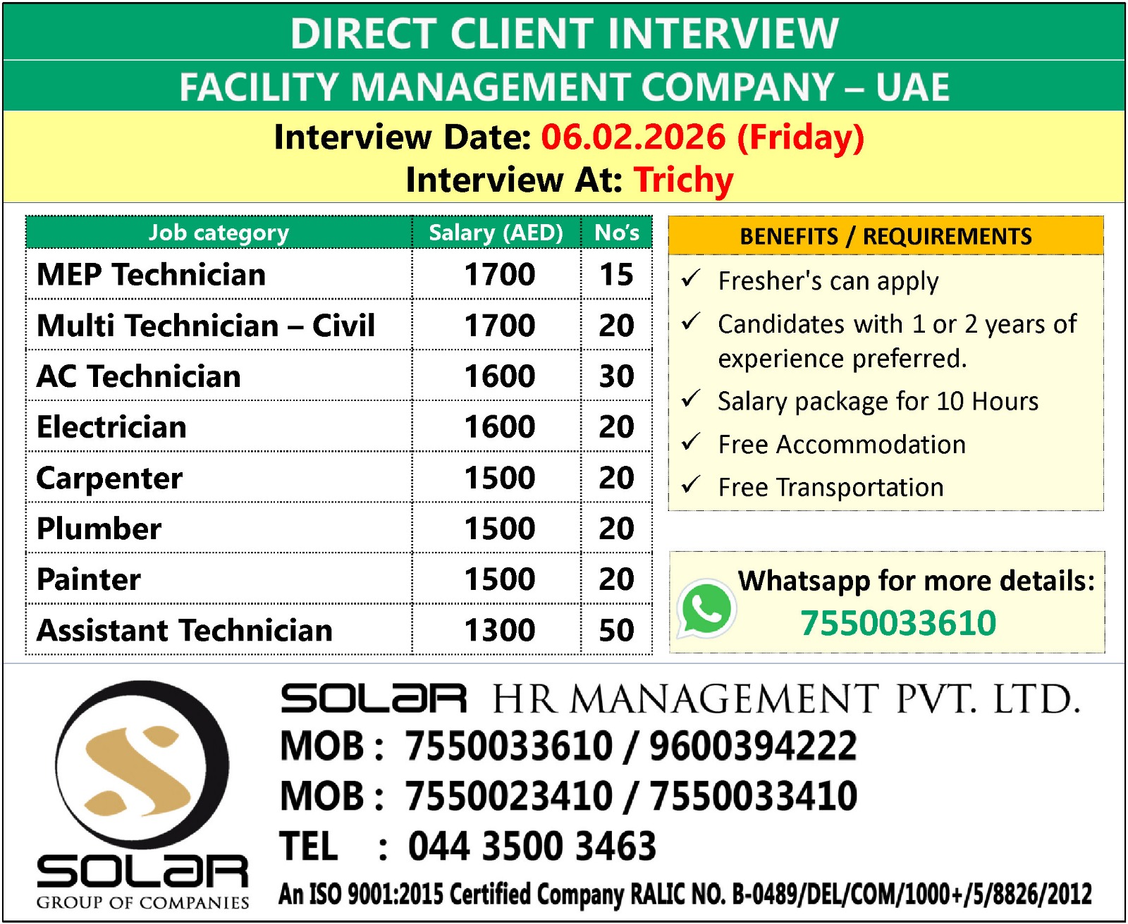 #UAEJobs #HiringNow #JobVacancy #TechnicianJobs #MaintenanceJobs #NowHiring #GulfJobs #JobOpening #UrgentHiring #ImmediateHiring #JobSearch #JobsInUAE #WalkInInterview #DubaiJobs #AbuDhabiJobs #UAEHiring #WorkInUAE #ApplyNow #JobAlert #FacilityManagement #BuildingMaintenance #TechnicalJobs #SkilledJobs