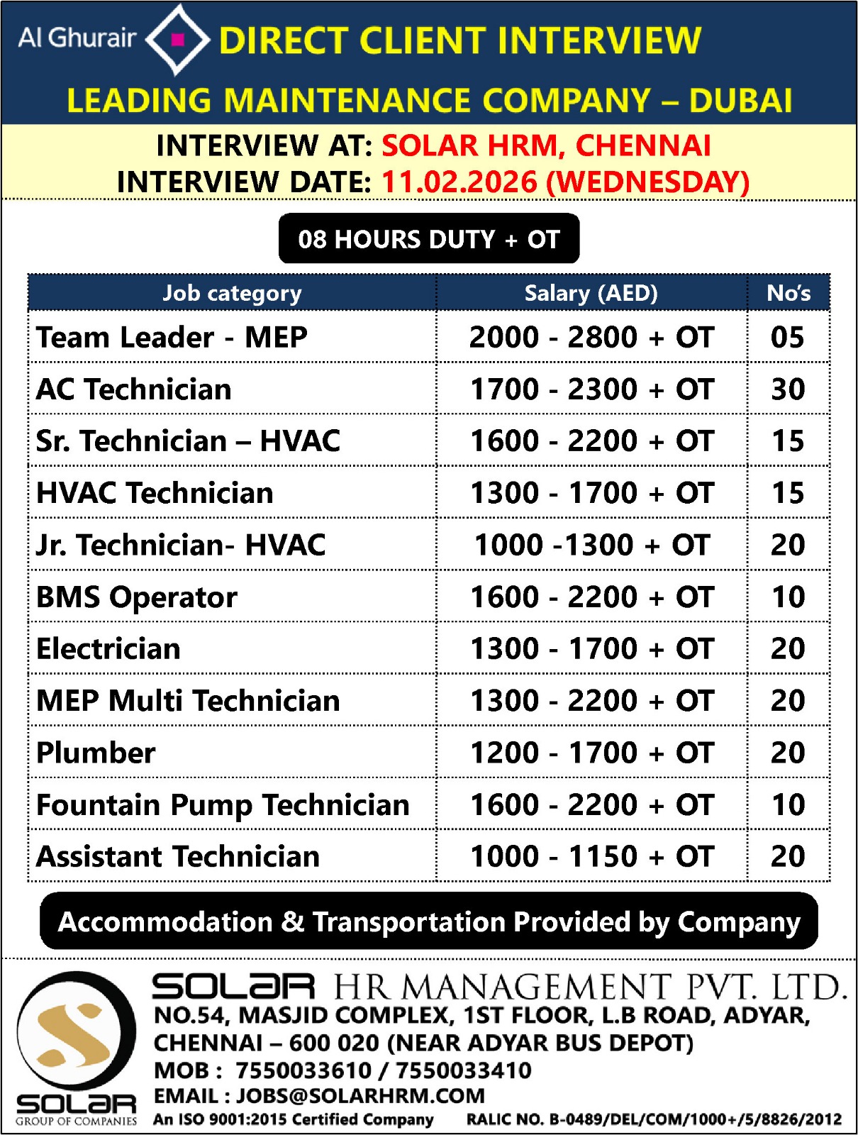 #UAEJobs #HiringNow #JobVacancy #TechnicianJobs #MaintenanceJobs #NowHiring #GulfJobs #JobOpening #UrgentHiring #ImmediateHiring #JobSearch #JobsInUAE #WalkInInterview #DubaiJobs #AbuDhabiJobs #UAEHiring #WorkInUAE #ApplyNow #JobAlert #FacilityManagement #BuildingMaintenance #TechnicalJobs #SkilledJobs